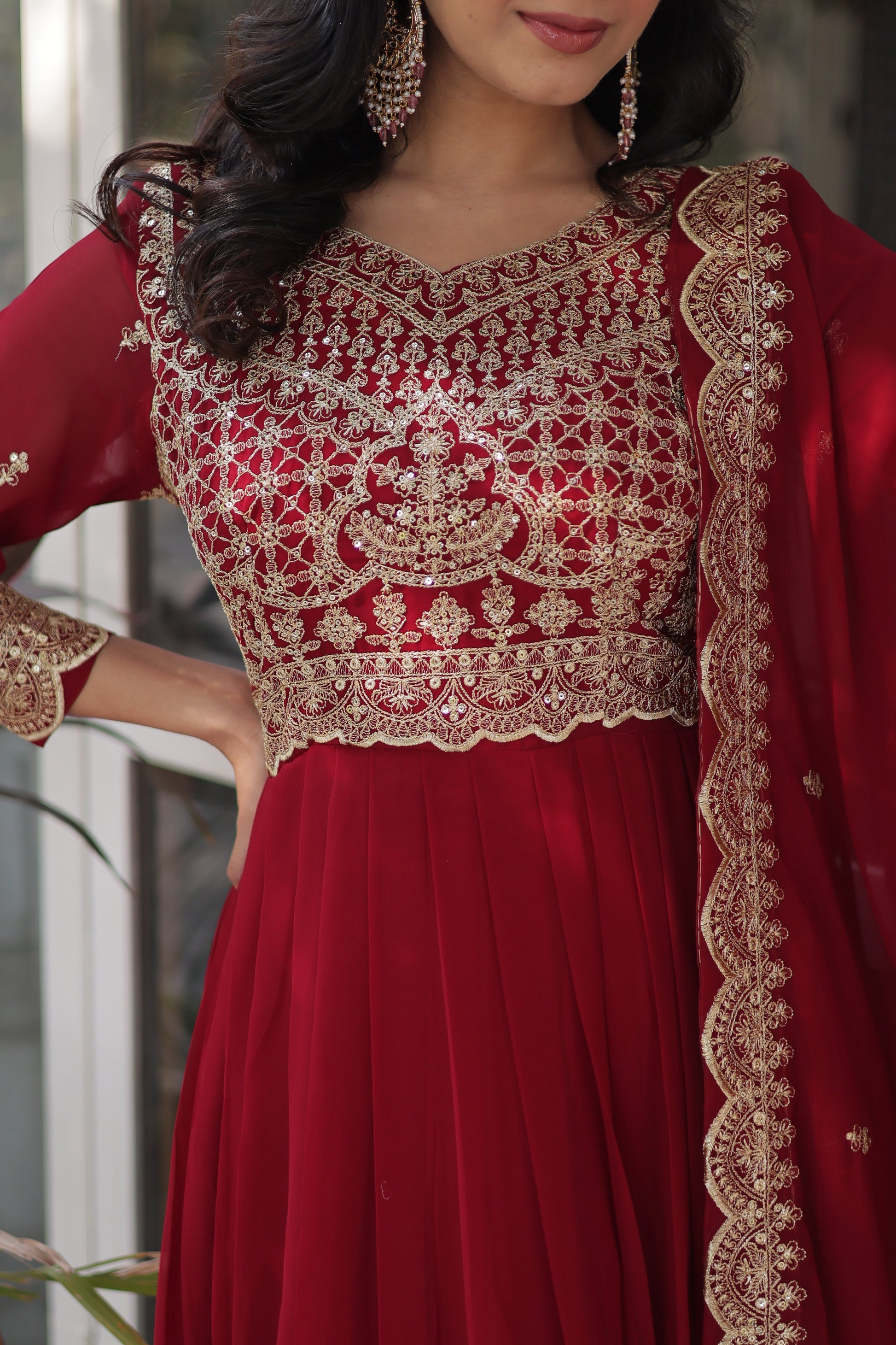 ππ» *GOWN :-* π ππ» *FABRIC & WORK:-* Faux Blooming with Embroidery Zari Sequins-work ππ» *LENGTH:-* 56 INCH ππ» *FLAIR:-* 3.5 MTR ππ» *LINING:-* Cotton (Full Inner Top To Bottom) ππ» *SLEEVE:-* Full Sleeves ππ» *NECK TYPE:* - Pan Shape Neck ππ» *DUPATTA :-* ππ» ππ» *FABRIC :-* Faux blooming With Sequins Embroidered work with designer lace border ππ» *Length:-* 2.25 MTR ππ» *PACKAGE CONTAIN:-* Gown-1,Dupatta-1